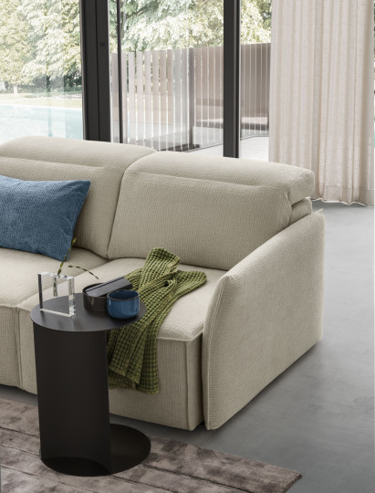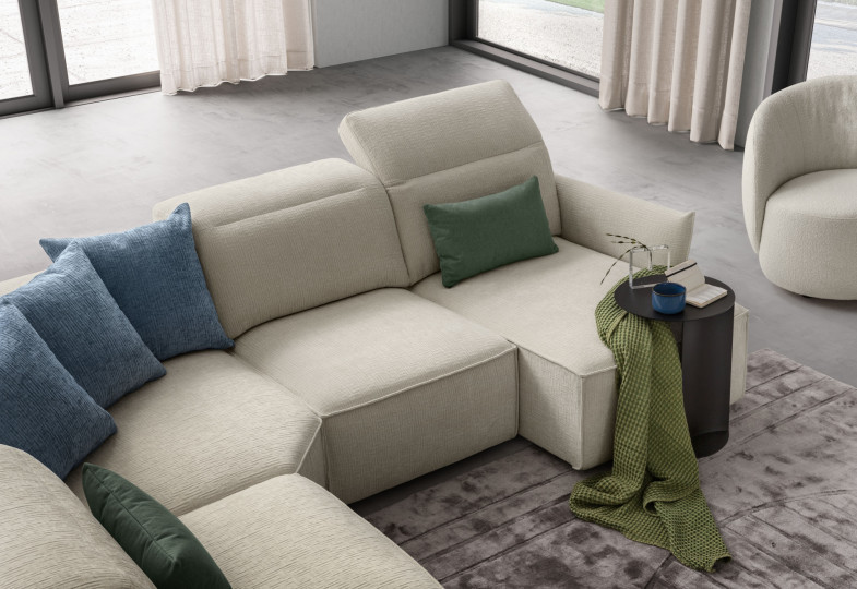 Potete realizzare il vostro sofà sia lineare che ad angolo senza rinunciare alle sedute estraibili scorrevoli. Particolarità di questo salotto è sicuramente l’infinita componibilità e la possibilità di personalizzare ogni cosa, dal rivestimento al tipo di bracciolo ma anche lo schienale o la seduta estraibile.