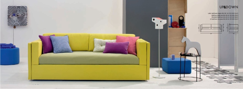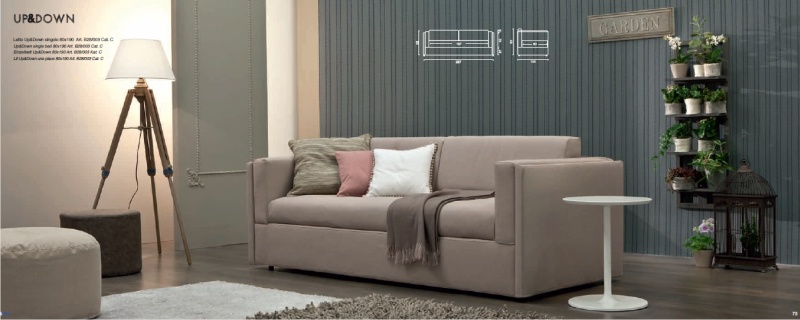 Up&Down è la soluzione ideale per una seconda casa o per arredare un monolocale dove mancano gli spazi per una cameretta o uno spazio notte: quello che di giorno è un divano comodo ed elegante, protagonista del living, si trasforma in letto a castello adatto all’uso quotidiano, fornito di due materassi ortopedici a moll altezza 21 cm, ideali sia per il ragazzo che per l’adulto. Da soggiorno a cameretta, la trasformazione consente di moltiplicare gli spazi e c’è posto per tutti in casa. Un letto a castello a scomparsa originale e comodissimo, con materassi di spessore adeguato pensati per un riposo corretto anche dormendoci tutti i giorni, e un divano curato e bello da vedere, ideale per arredare il soggiorno.