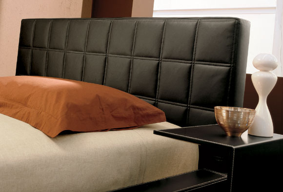 La struttura in cuoio cucito del giroletto si accosta alla testiera in ecopelle. La pelle ecologica è finemente trapuntata per un letto matrimoniale importante e dal design moderno.