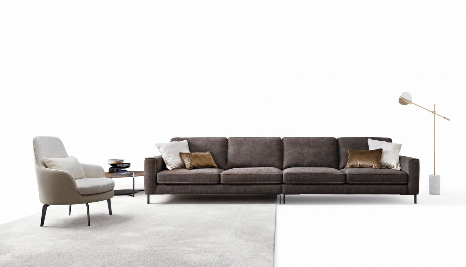 Varianti: Russel è un divano componibile, è possibile realizzare il proprio salotto con le diverse versioni disponibili (da due a tre posti maxi), integrabili con pouf e diverse varianti di braccioli e schienali, potrete creare soluzioni di design ad angolo o con chaise longue e lineari.